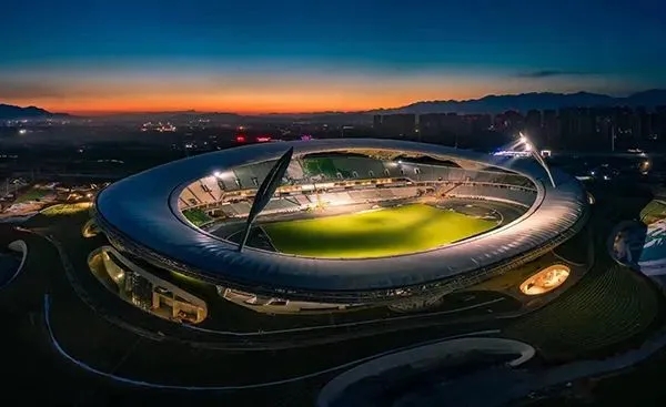國內首個雙層膜結構體系場館。為達到輕盈如云朵般的效果,體育場罩棚選用國內首個罩棚雙層膜體系,采用進口的法拉利PTFE膜。罩棚投影面積約2.5萬平方米,南北跨度272米,東西跨度218米,最大雙側懸挑61米。罩棚呈白色環形,像一圈輕盈的“光冕”漂浮在大地之上,全方位覆蓋所有坐席,可以遮蔽烈日和雨雪,兼顧吸聲。